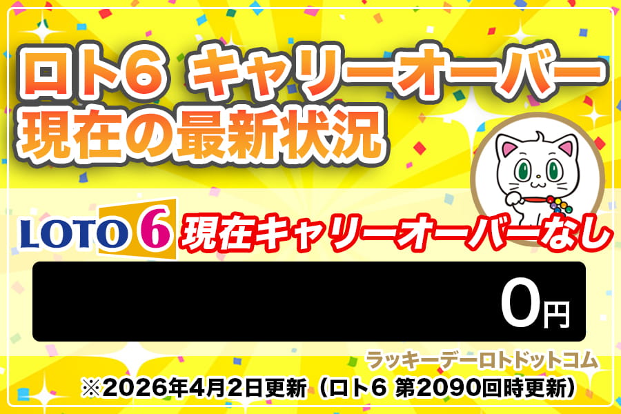 思ってたより、ロト6はキャリーオーバーが発生してるのにゃんね。多くの人がキャリーオーバー発生を望んで、1等をゲットするのを期待するのも納得にゃんね(≡^ω^≡)